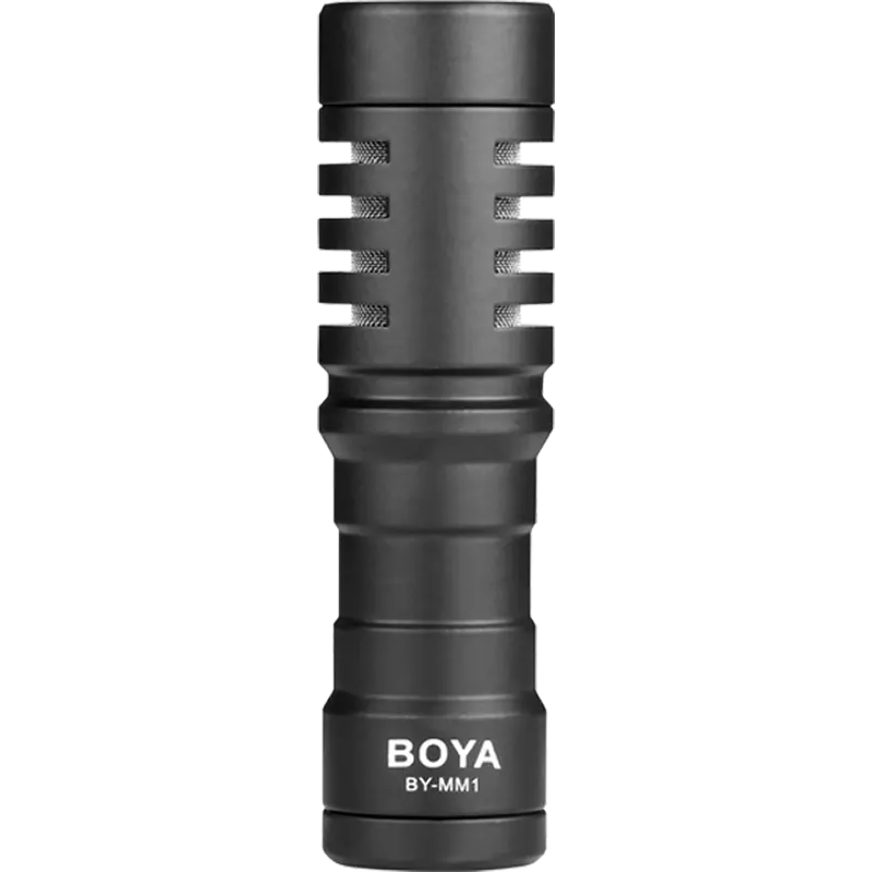 - BOYA BY-MM1 microphone unit with built-in cold-shoe shock mount
