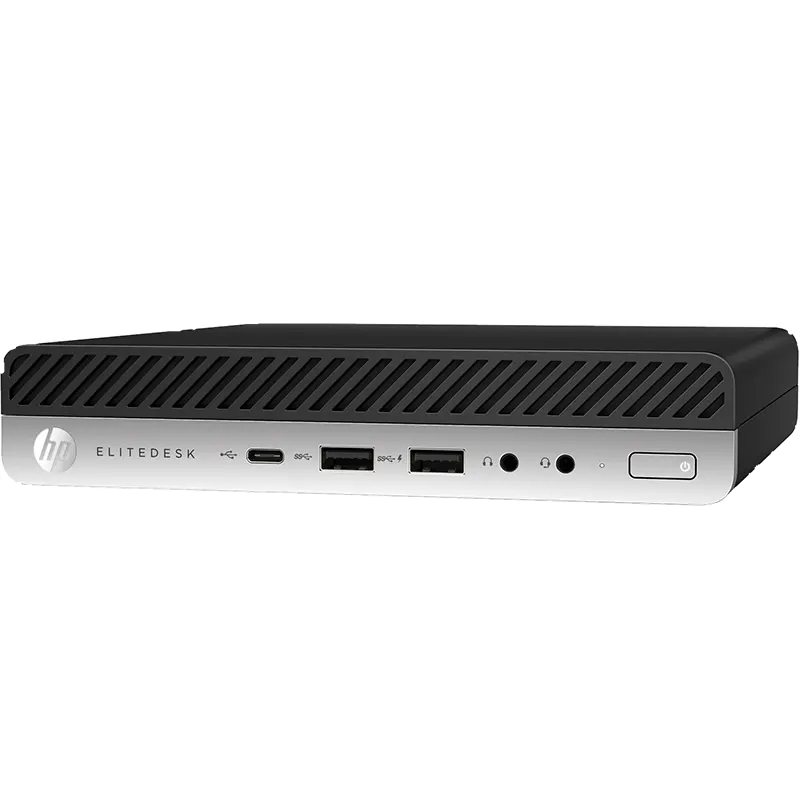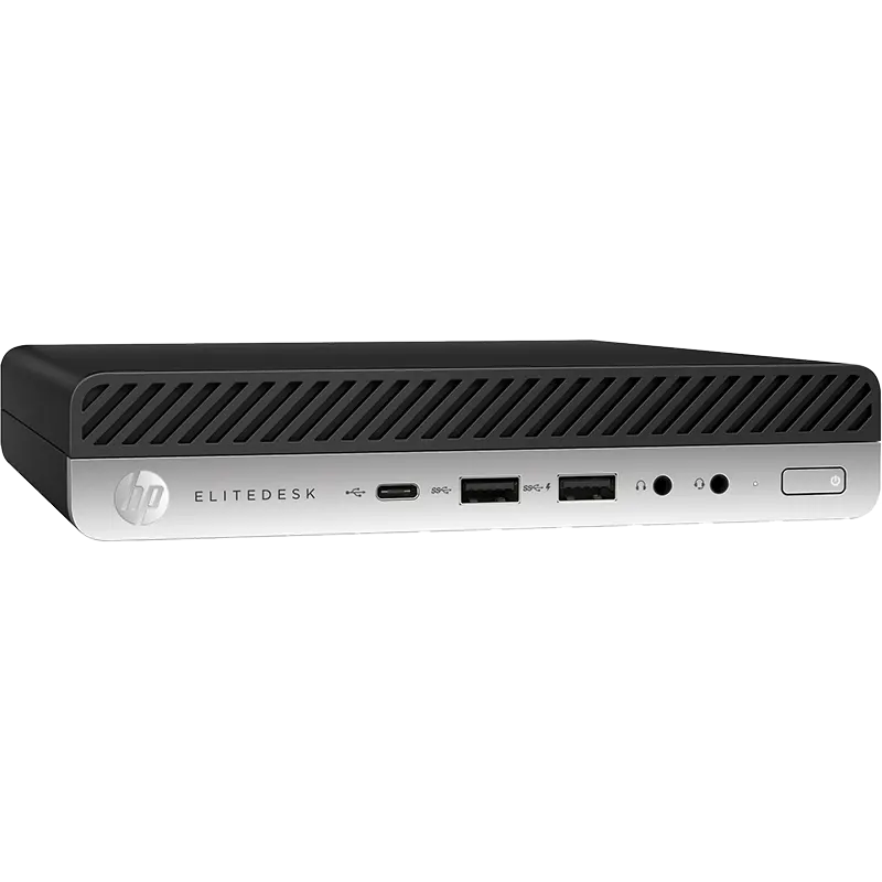 - HP EliteDesk 800 G3 Mini desktop unit with Windows 10 Pro installed.