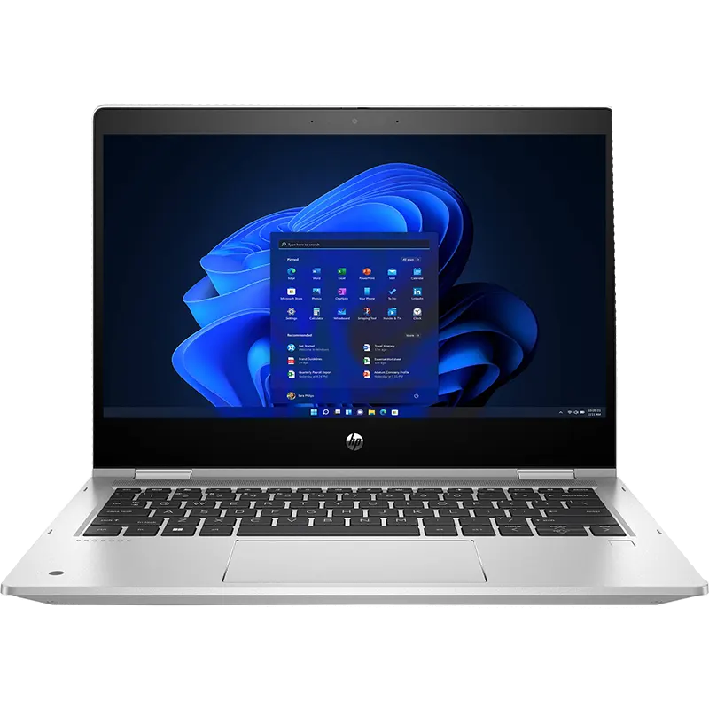 - HP ProBook x360 435 G9 business laptop with professional convertible design and HP Wolf Security for Business features.