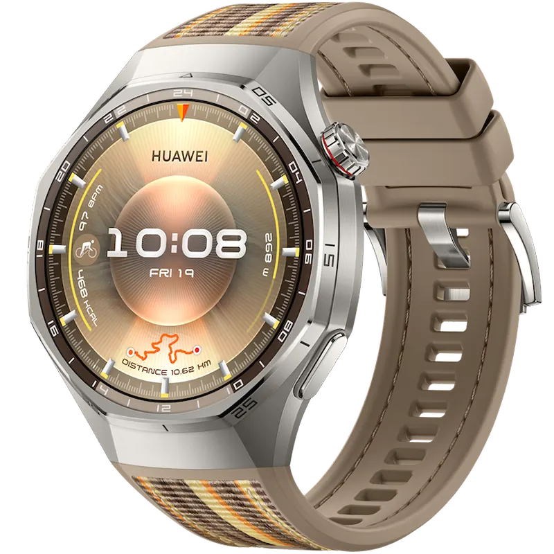 The Huawei Watch GT 6 Pro (46mm) measures 45.6 x 45.6 x 11.25mm and weighs 54.7 grams without the strap - dimensions that provide substantial wrist presence for health sensor accuracy while maintaining comfortable proportions for extended wear including sleep tracking and intensive exercise sessions. The titanium alloy naturally runs cooler against the skin compared to stainless steel, contributing to comfort during warm weather and exercise in Kenya's tropical climate - a subtle difference that becomes noticeable during long workouts and continuous daily wear throughout Nairobi's warmer months. The nanocrystal ceramic back cover provides a smooth, hypoallergenic surface against your skin that doesn't cause the irritation or rash that some users experience with plastic or low-grade metal sensor housings during multi-day continuous wear. Three strap options provide versatility across different activities and occasions: Black Fluoroelastomer for workouts, swimming, and casual daily wear; Brown Composite Woven for business casual and professional environments; and Titanium for formal occasions and users who prefer the full metal aesthetic throughout their day. The quick-release strap mechanism enables tool-free switching between these options, while the 140mm to 210mm wrist size compatibility accommodates most adult wrists. The rotating crown provides smooth menu navigation without obscuring the display, while the programmable side button offers one-touch access to your most-used feature - defaulting to the workout menu but configurable to any app or function. Users report that the octagonal design sits naturally on the wrist with rounded contact edges that prevent the angular case shape from creating pressure points during sleep or intensive wrist-flexion exercises.
