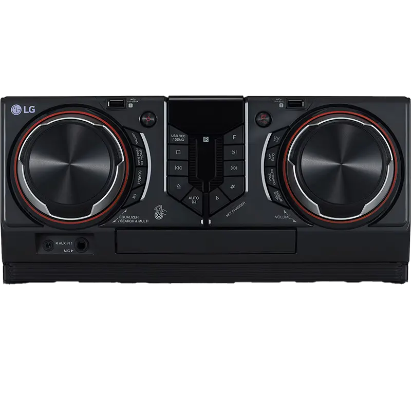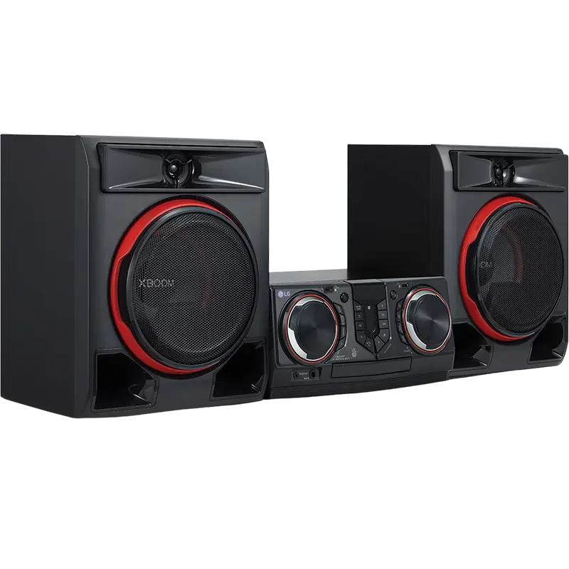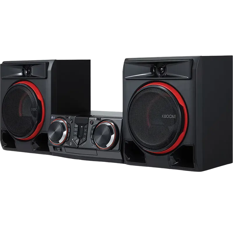 - LG XBOOM CL65 main unit with built-in CD player, FM tuner, 950W amplifier, and comprehensive audio processing