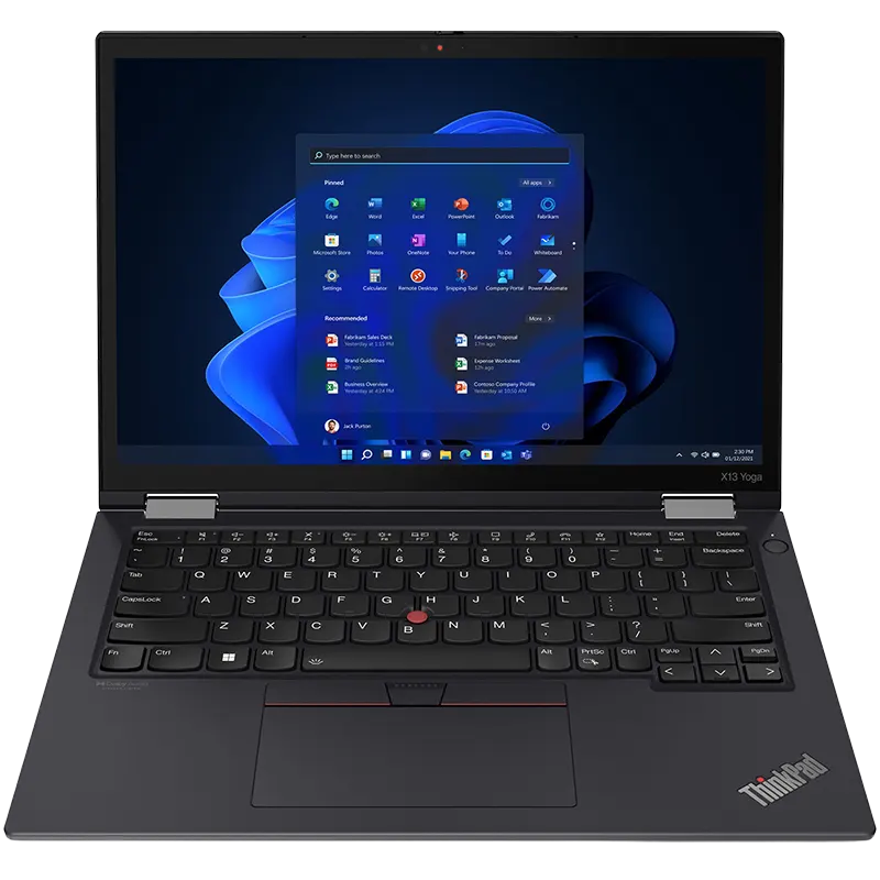 - Lenovo ThinkPad X13 Yoga Gen 3 convertible laptop with 360-degree hinge and integrated stylus.