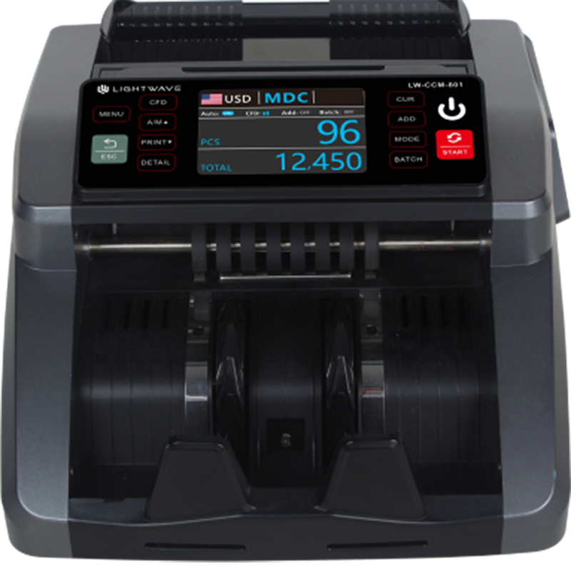 - Lightwave LW-CCM-801 Cash Counting Machine with comprehensive counterfeit detection technology