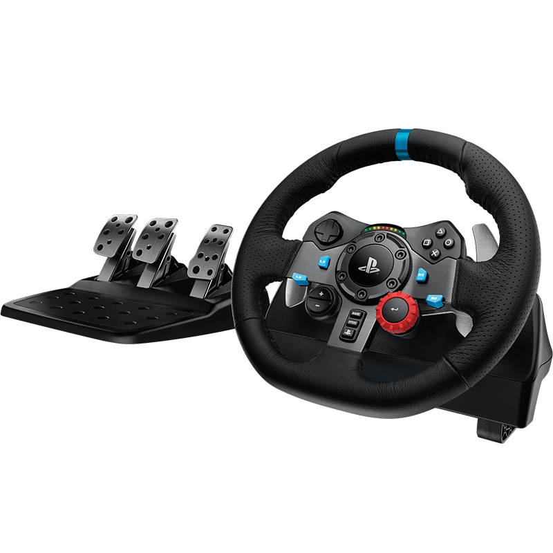 - Logitech G29 Driving Force Racing Wheel with hand-stitched leather covering and integrated controls