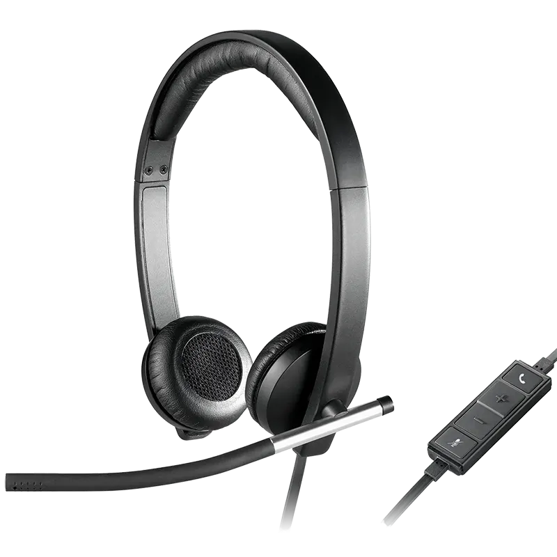- Logitech H650e Business Headset with enterprise-grade audio drivers and noise-canceling microphone technology
