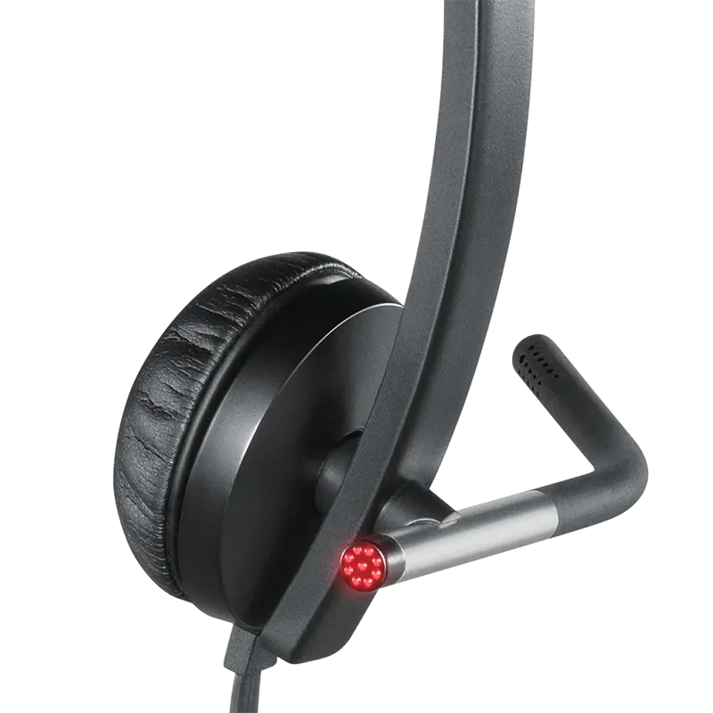 - LED Call Indicator: Bright red light on boom backside provides clear visual status to colleagues and supervisors during business calls
