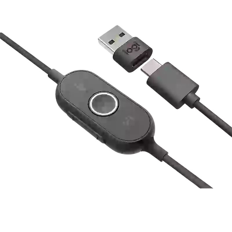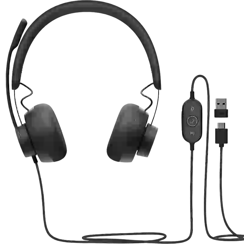 - Logitech Zone Wired headset with professional 40mm drivers and dual noise-canceling microphones