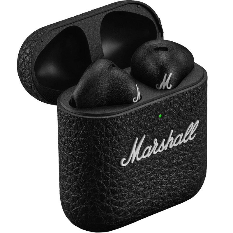 - Marshall Minor IV true wireless earbuds with legendary audio performance and innovative open-ear comfort design